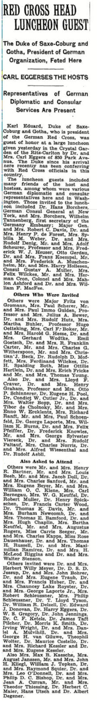 "The German embassy said today it had been told that the president of the German Red Cross, the Duke of Saxe-Coburg, was coming to the United States, for consultation in matters concerning the International Red Cross…" (Excerpt from above.)