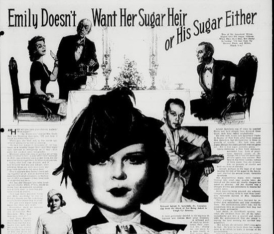(14 November 1943). Emily doesn’t want her sugar heir or his sugar either. Detroit Evening Times, American Weekly supplement, syndicated, p. 5.]. (P00017).